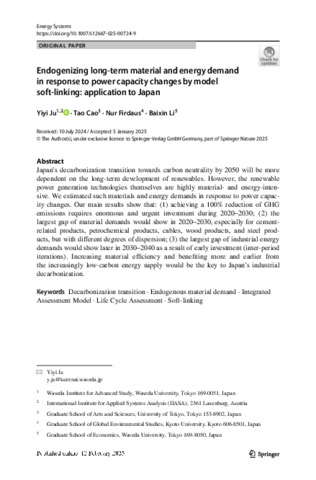 Endogenizing long-term material and energy demand in response to power capacity changes by model soft-linking: application to Japan.