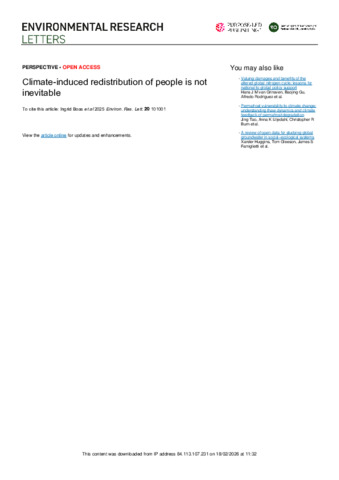 Boas, I., Sterly, H., Farbotko, C., Hulme, M., Benveniste, H., Schewel, K.D., Bettini, G., Borderon, M., Hoffmann, R., van der Geest, K., Durand-Delacre, D., Selby, J., Wrathall, D.J., Baldwin, A., Benítez Cortés, A., Bukari, K.N,, Bunchuay-Peth, S., Capisani, S., Codjoe, S.N.A., Dahm, R., et al. (2025). Climate-induced redistribution of people is not inevitable. Environmental Research Letters 10.1088/1748-9326/adfdfd. (In Press)