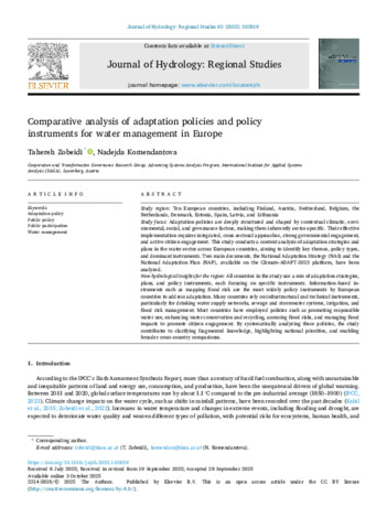 Zobeidi, T. & Komendantova, N. (2025). Comparative analysis of adaptation policies and policy instruments for water management in Europe. Journal of Hydrology: Regional Studies 62 e102819. 10.1016/j.ejrh.2025.102819.