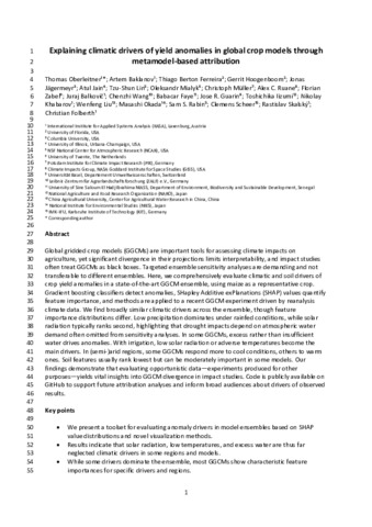 Oberleitner, T., Baklanov, A. ORCID: https://orcid.org/0000-0003-1599-3618, Ferreira, T.B., Hoogenboom, G., Jägermeyr, J., Jain, A., Lin, T.-S., Mialyk, O., Müller, C., Ruane, A.C., Zabel, F., Balkovič, J. ORCID: https://orcid.org/0000-0003-2955-4931, Wang, C., Faye, B., Guarin, J.R., Iizumi, T., Khabarov, N. ORCID: https://orcid.org/0000-0001-5372-4668, Liu, W., Okada, M., Rabin, S.S., et al. (2025). Explaining climatic drivers of yield anomalies in global crop models through metamodel-based attribution. ESS Open Archive 10.22541/essoar.176071967.73925210/v1. (Submitted)