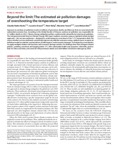Rodés-Bachs, C., Drouet, L., Rafaj, P. ORCID: https://orcid.org/0000-0003-1000-5617, Tavoni, M., & Reis, L.A. (2025). Beyond the limit: The estimated air pollution damages of overshooting the temperature target. Science Advances 11 (42) eadu7590. 10.1126/sciadv.adu7590.
