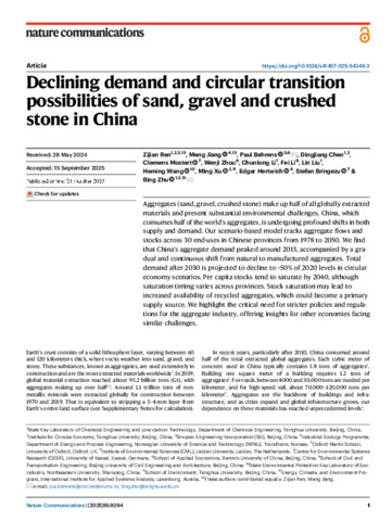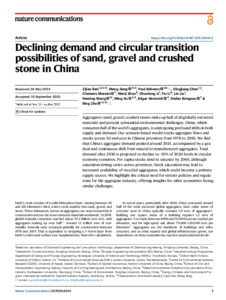 Declining demand and circular transition possibilities of sand, gravel and crushed stone in China.