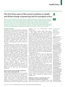 Cai, W., Zhang, C., Zhang, S., Bai, Y., Chen, B., Chen, J., Cheng, L., Fan, W., Feng, L., Guan, D., Hong, C., Hu, Y., Hua, J., Huang, C., Huang, H., Huang, J., Huang, X., Ji, J.S., Jiang, Q., Jiang, X., et al. (2025). The 2025 China report of the Lancet Countdown on health and climate change: empowering cities for synergistic action. The Lancet Public Health 10.1016/S2468-2667(25)00230-0. (In Press)