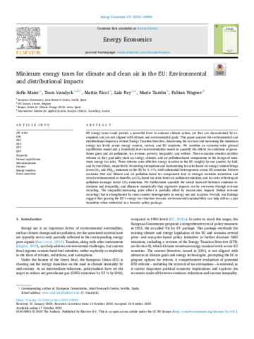 Minimum energy taxes for climate and clean air in the EU: Environmental and distributional impacts.