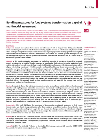 Bundling measures for food systems transformation: a global, multimodel assessment.