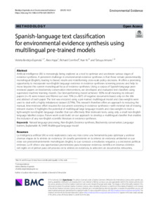 Spanish-language text classification for environmental evidence synthesis using multilingual pre-trained models.