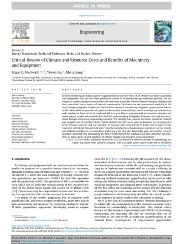 Hertwich, Edgar G., Liu, Yiwen, & Jiang, Meng (2025). Critical Review of Climate and Resource Costs and Benefits of Machinery and Equipment. Engineering 10.1016/j.eng.2025.10.034. (In Press)