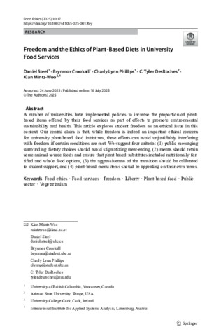 Freedom and the Ethics of Plant-Based Diets in University Food Services.