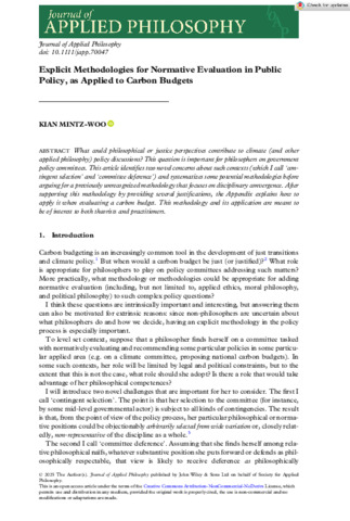 J Applied Philosophy - 2025 - Mintz‐Woo - Explicit Methodologies for Normative Evaluation in Public Policy as Applied to.pdf - Published Version Available under License Creative Commons Attribution. Download (270kB) | Preview |