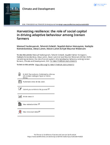 Harvesting resilience the role of social capital in driving adaptive behaviour among Iranian farmers.pdf - Published Version Available under License Creative Commons Attribution. Download (1MB) | Preview |