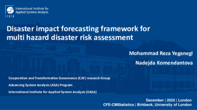 Yeganegi, R. ORCID: https://orcid.org/0000-0003-4109-0690 & Komendantova, N. ORCID: https://orcid.org/0000-0003-2568-6179 (2025). Disaster impact forecasting framework for multi hazard disaster risk assessment. In: 19th International Joint Conference on Computational and Financial Econometrics (CFE) and Computational and Methodological Statistics (CMStatistics), 13-15 December 2025, London, UK.
