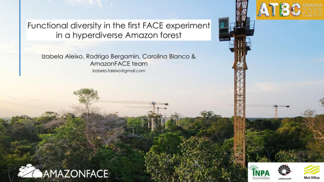Aleixo, I., Garcia, S., Blanco, C., Bergamin, R., Damasceno, A.R., Bittencourt, P., Lugli, L., Fleischer, K., Martins, N., Spanner, G., Soares, J.C., Lima, I., Tosto, A., Oliveira, E., Pires, J., Honorato, C., Batista, D., Bareto, A.B., Martins, M., Lima, B., et al. (2025). Functional diversity in the first FACE experiment in a hyperdiverse Amazon forest. In: 61ˢᵗ Annual Meeting of the Association for Tropical Biology and Conservation (ATBC), 29 June - 4 July, 2025, Oaxaca de Juárez, Oaxaca, Mexico.