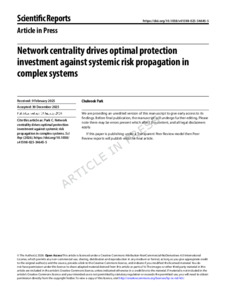 Park, C. (2026). Network centrality drives optimal protection investment against systemic risk propagation in complex systems. Scientific Reports 10.1038/s41598-025-34645-5.