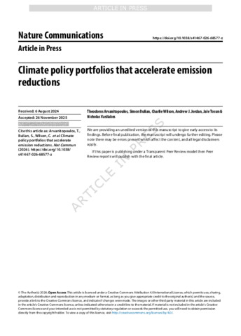 Arvanitopoulos, T., Bulian, S., Wilson, C. ORCID: https://orcid.org/0000-0001-8164-3566, Jordan, A.J., Tosun, J., & Vasilakos, N. (2026). Climate policy portfolios that accelerate emission reductions. Nature Communications 10.1038/s41467-026-68577-z. (In Press)