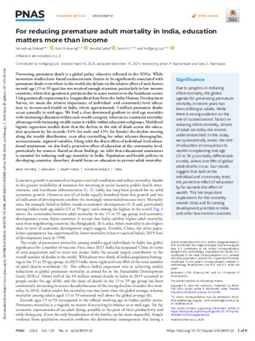Dhakad, M. ORCID: https://orcid.org/0000-0002-8798-385X, Striessnig, E. ORCID: https://orcid.org/0000-0001-5419-9498, Saikia, N., K.C., S., & Lutz, W. ORCID: https://orcid.org/0000-0001-7975-8145 (2026). For reducing premature adult mortality in India, education matters more than income. Proceedings of the National Academy of Sciences 123 (6) e2503809123. 10.1073/pnas.2503809123.