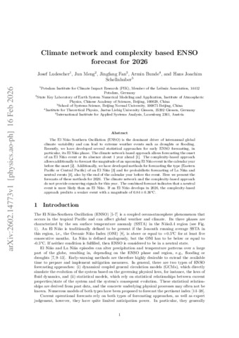 Climate network and complexity based ENSO forecast for 2026.
