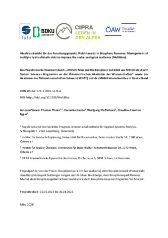 Abschlussbericht für das Forschungsprojekt Multi-hazards in Biosphere Reserves: Management of multiple hydro-climatic risks to improve the social-ecological resilience (Multibios).