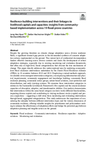 Resilience-building interventions and their linkages to livelihood capitals and capacities: insights from community-based implementation across 19 flood-prone countries.