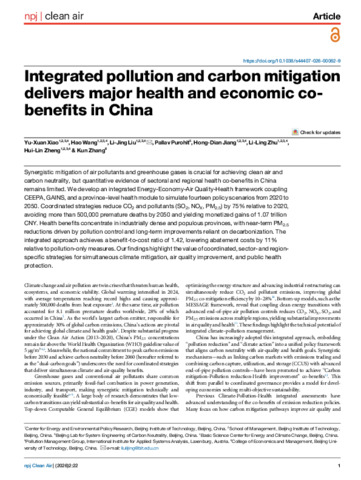 Integrated pollution and carbon mitigation delivers major health and economic co-benefits in China.