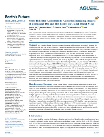 Earth s Future - 2026 - Hu - Multi‐Indicator Assessment to Assess the Increasing Impacts of Compound Dry and Hot Events on.pdf - Published Version Available under License Creative Commons Attribution. Download (2MB) | Preview |